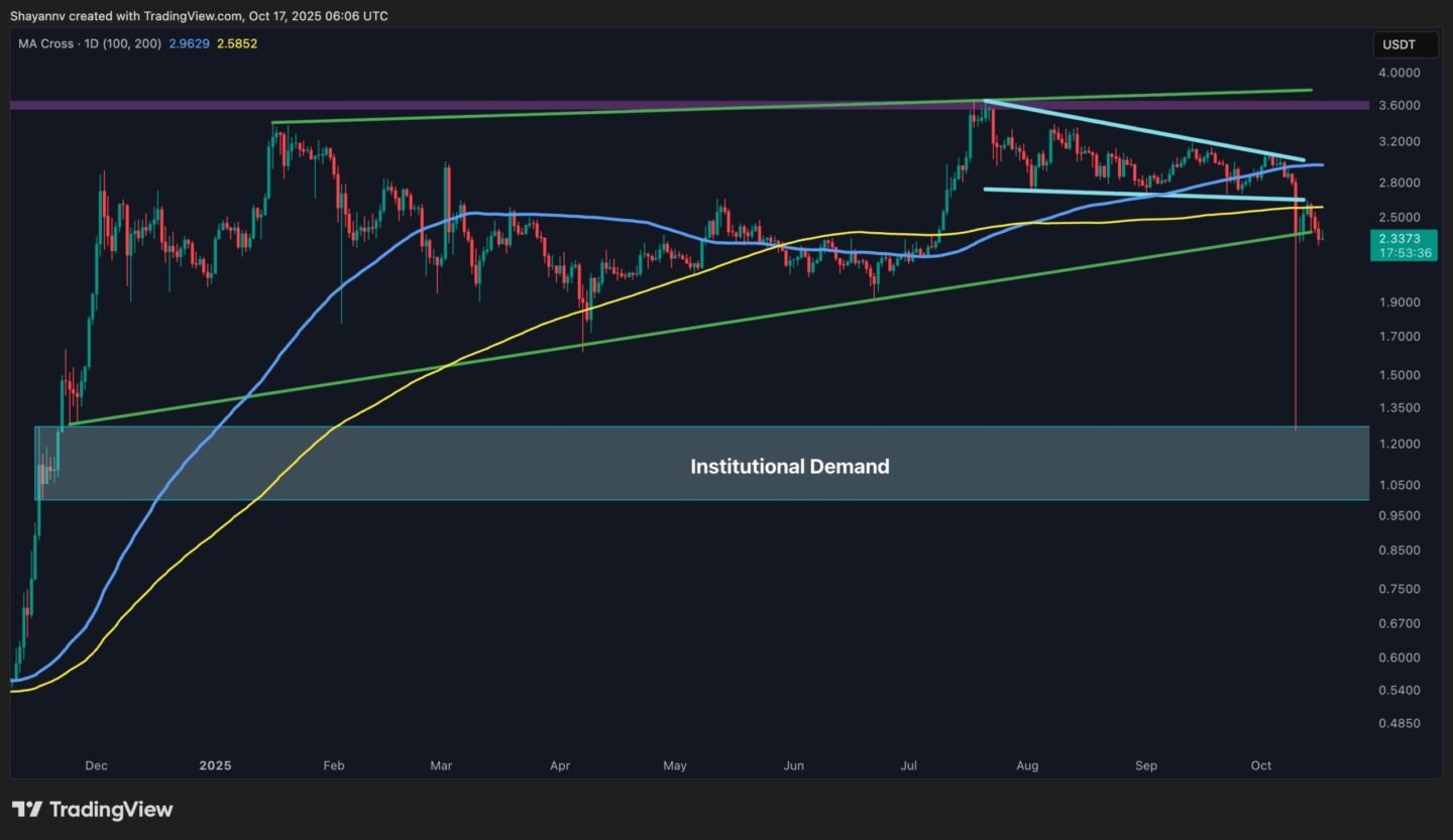 Currently, the asset is hovering around the $2.3 region, which overlaps with the 200-day MA and the lower boundary of the wedge pattern. This area serves as the final technical buffer before the price potentially revisits the institutional demand zone between $2 and $1.3, where major long-term accumulations took place earlier this year.