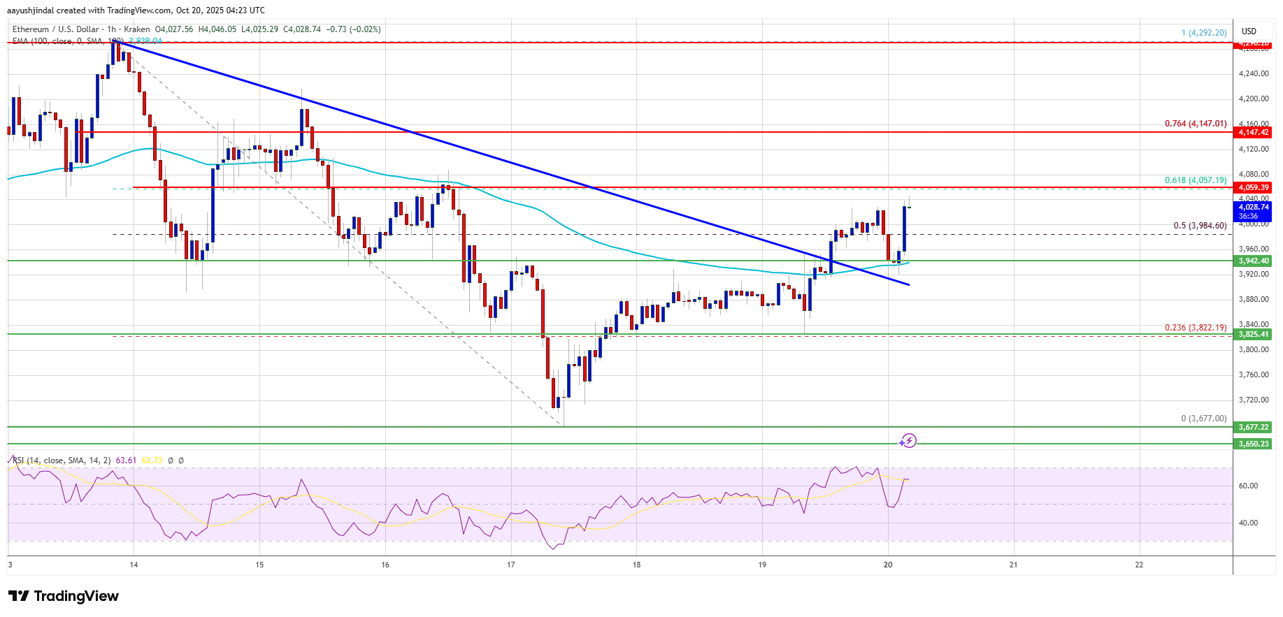 Ethereum price started a recovery wave above $3,880. ETH is now rising and might aim for more gains if it clears the $4,050 resistance.